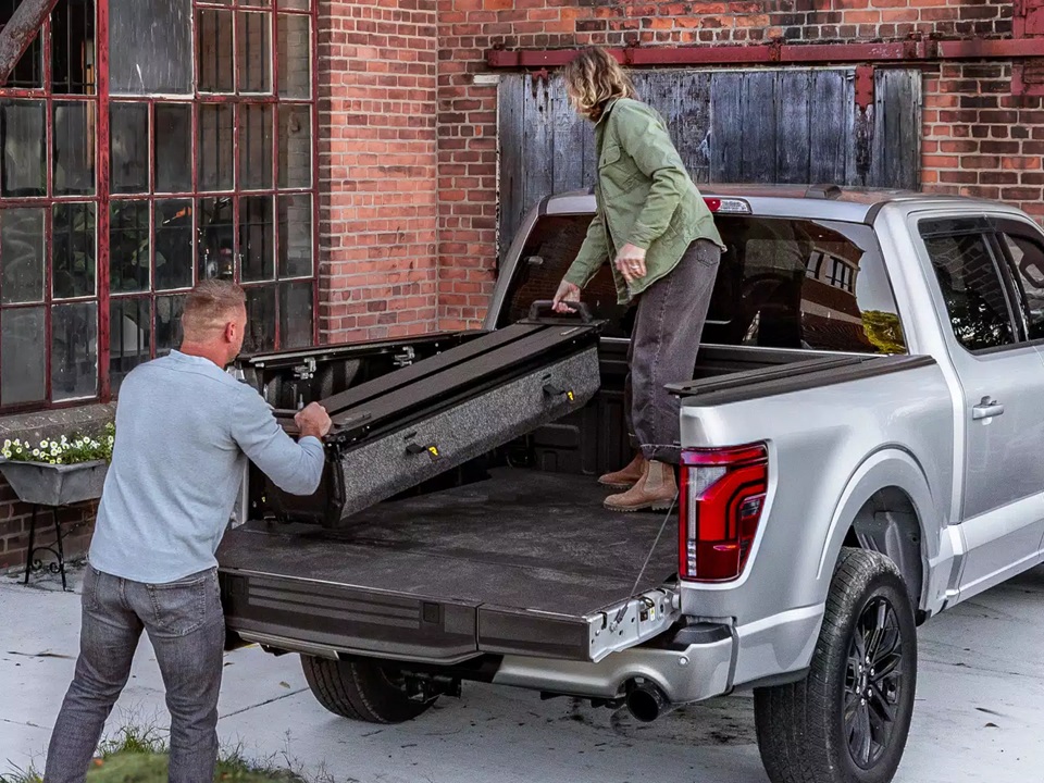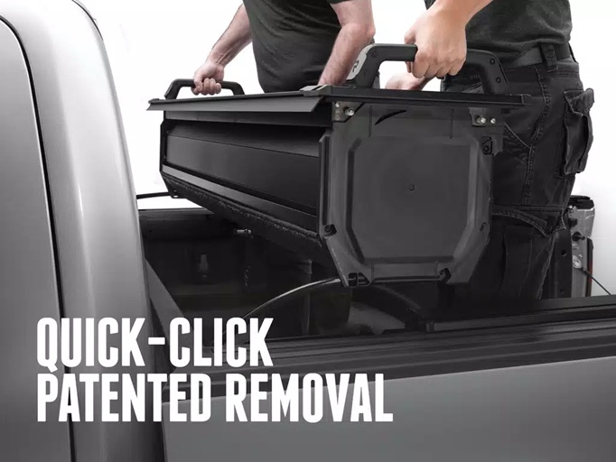 - First-of-its-kind EZ-OFF™ retractable tonneau cover featuring a quick-click system with built-in EZ-OFF™ handles
